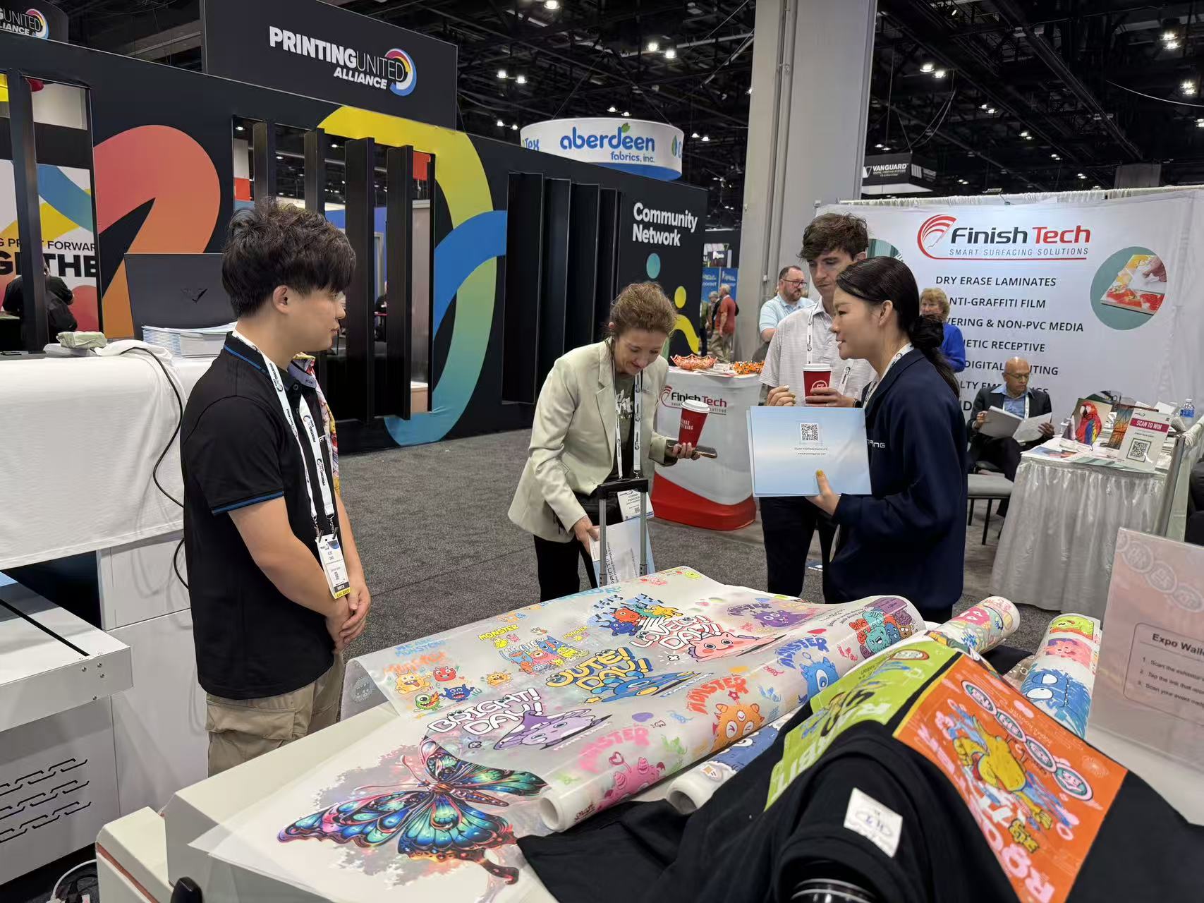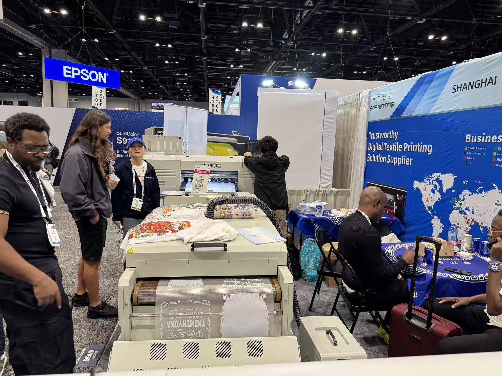 享印参展PRINTING United,展位号:H4166,展示了T605白膜烫画机方案,T4 pro DTG方案,享印提供除了热转印机器之外,还有dtf 2喷头到8喷头全系列机型,DTG 4喷头,6喷头,8喷头机型。